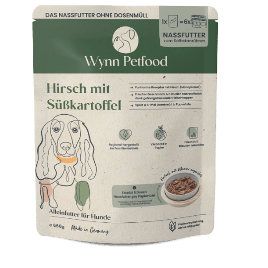 Unsere Sorte mit Hirsch ist besonders auch für empfindliche Hunde und Allergiker geeignet. Mit Hirschfleisch als Monoprotein ist das Futter besonders mager, sehr gut verdaulich & punktet durch einen hohen Nährstoffgehalt.